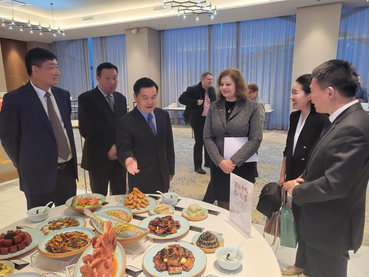 推介会上,宁波市文广旅游局二级巡视员徐小设先生对宁波的文化旅游资源进行了详细推介,并就2023中国-中东欧国家博览会招商招展、144小时过境免签和入境旅游专卖店等内容进行了重点推介。现场特别设置的宁波美食品鉴和抽奖环节更是将气氛推到高潮,倒笃白蟹、腐皮黄鱼,让人垂涎三尺,越窑青瓷、茶叶等“宁波礼物”让人赞叹不已,到场业界嘉宾纷纷表示,宁波的文旅资源很有吸引力,愿在今后积极推动双方旅游领域合作。