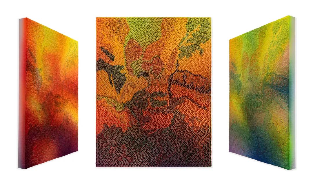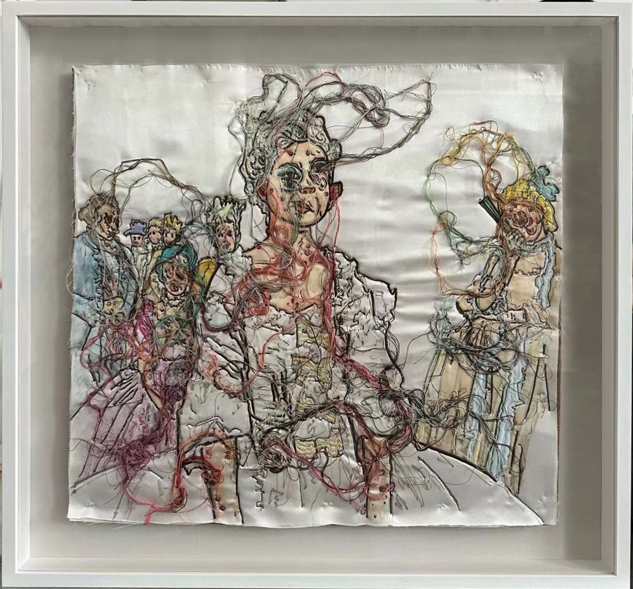 《蜘蛛山No.1》 布面综合、真丝、丝线