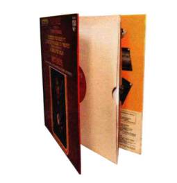 一些法国精装单片的唱片封套,不但是折页式的设计,在对开的扉页之间,还夹着一个中间开圆孔的夹页,唱片从中间取出。