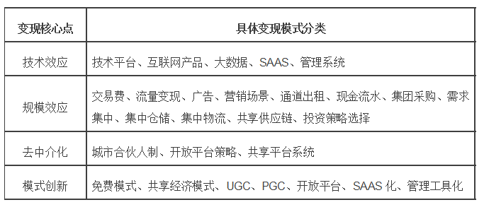 而实现变现的基本逻辑是以平台流量的集中和行业的垄断地位为后盾,利用话语权体系的影响,实现对于行业原有信息系统、资本运作模式、供应链体系、IT支撑系统进行优化升级,甚至是改造的整个过程。