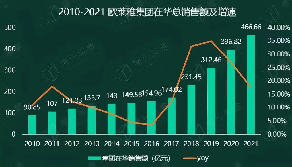 这两个“死对头”明争暗斗了数十年,一直难分高下。如今,欧莱雅虽略胜一筹,但若仔细分析其财报数据和运营情况,不难发现,欧莱雅是亦喜亦忧——2022年,欧莱雅在中国市场增速已连续第3年下降,危机的信号灯已亮起。