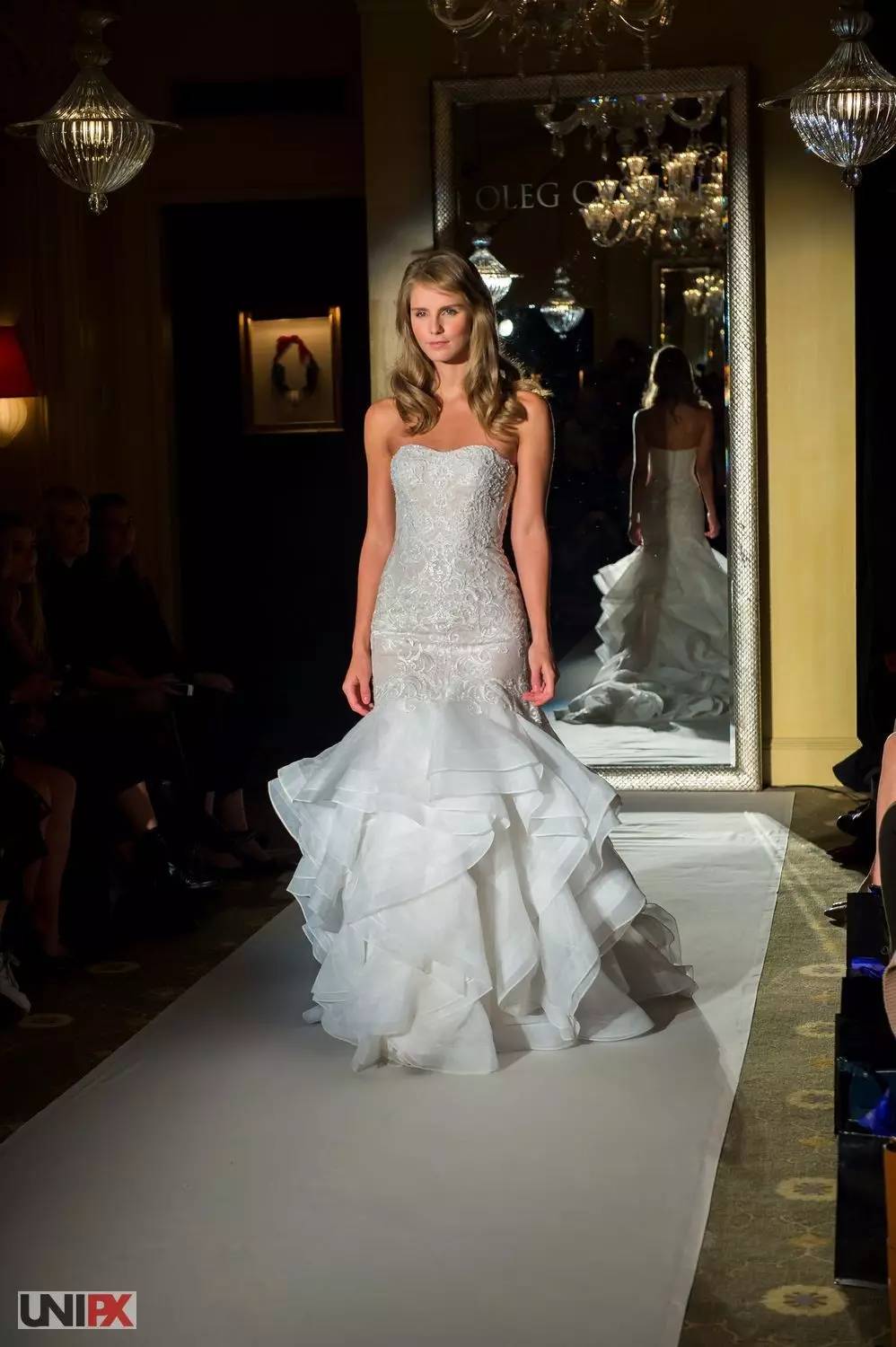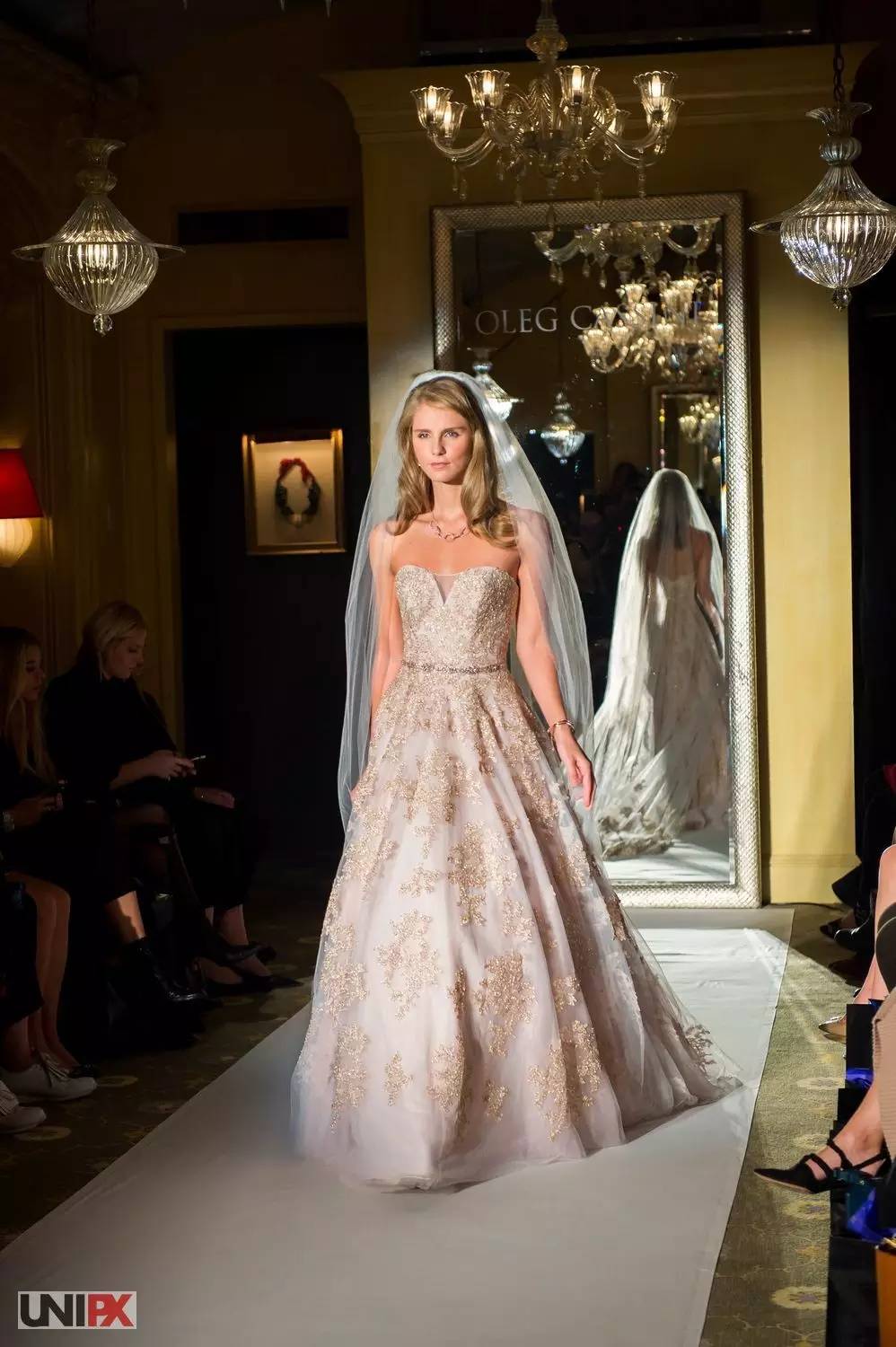 婚纱设计方面,Oleg Cassini则是第一个设计出抹胸婚纱,为婚纱设计业带来了变革。俄式雍容,苏维埃式铁血是这一季Oleg Cassini的主格调,优雅又有坚韧的新娘,正是当下最受人们喜爱的。