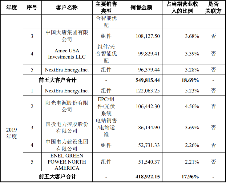 具体来说,第一大客户华能集团,是天合光能这块业务营业收入的主要贡献者: