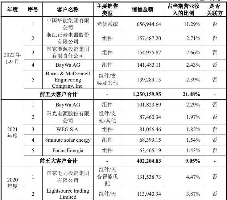 在2022年前三季度,华能集团一家的贡献,占了公司总营业收入的11.29%,占“光伏系统产品”这块业务的71.59%。
