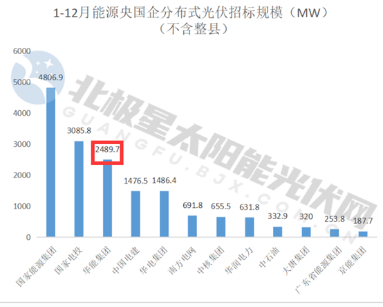 2022年,华能的“整县推进”分布式项目招标规模实现4.74GW,位列全国第一,分布式(不含整县)招标有2.49GW,在各在央企中位列第三。以上两项招标规模合计7.23GW,但这只是招标。