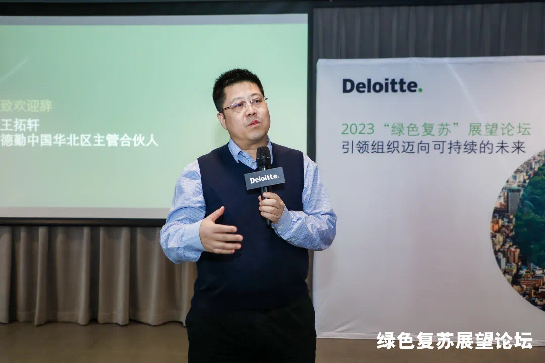 世界经济论坛(WEF)最新的《2023年全球风险报告》指出,减缓气候变化和气候变化适应行动失败、自然灾害与极端天气事件、生物多样性丧失是未来十年世界面临的前四大风险,环境、社会、经济等各项风险深度互联,亟需全球实施可持续发展变革。德勤中国华北区主管合伙人王拓轩在欢迎致辞中表示,在后疫情时代,共同探讨如何实现经济绿色复苏意义重大。