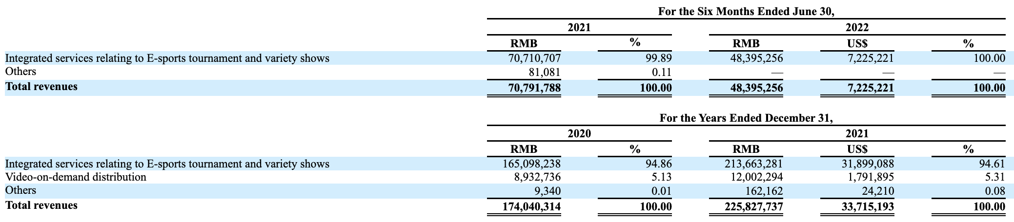 另一方面的收入来源是视频点播和分发,内容来自于过去运营过的项目。2021年,这部分收入的占比在5.31%。其他收入来自于向流媒体直播平台提供运营服务。