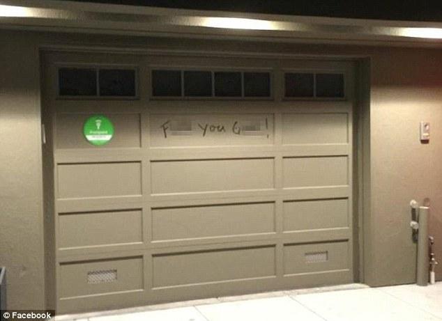 2015年8月某个周六的早晨, Kan醒来后发现自家车库的大门上遭人涂鸦,上面有污蔑性的言辞。
