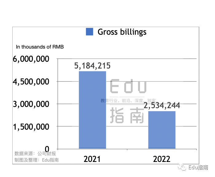 2022财年高途公司总账单额为25亿元,上一财年该项为52亿元,本财年同比减少51%。即最新财年课程等销售额减少超一半。