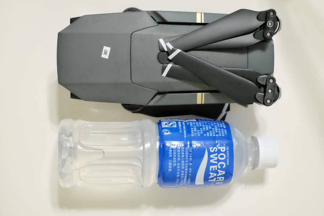 Mavic是大疆产品线中最小的整机,其折叠后的大小仅为83mm * 83mm * 198mm,跟一个矿泉水瓶的大小相仿,且体重只有743克。