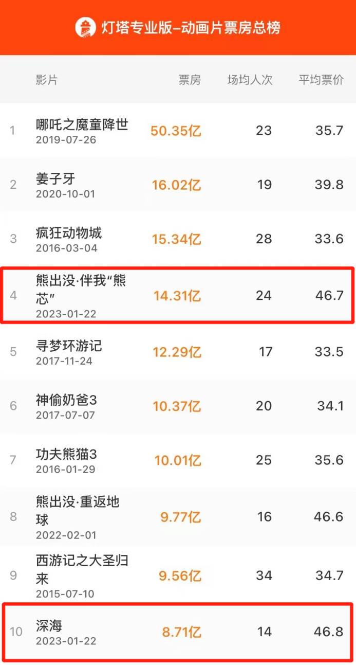目前这两部国产动画新作已经双双跻身内地动画电影影史TOP10,这也是疫情以来继《姜子牙》《熊出没·重返地球》之后市场表现最好的两部动画电影。