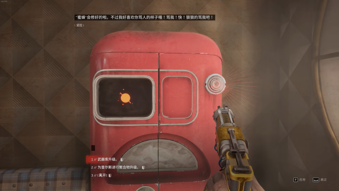 值得一提的是,在游戏里也有完全不靠外形就让玩家着迷的角色设计,那就是游戏发售后立刻引发热议的“魅魔冰箱”Nora,作为玩家的升级据点,这台拥有机械触手的机器虽然在外形上没有什么亮点,但台词却热烈奔放,极具挑逗意味。在接连不断的“虎狼之词”和配音演员的优秀表演加成下,基本只能与玩家进行升级互动的Nora却成为了游戏里“数一数二的烧机”,人气直逼双生舞伶。