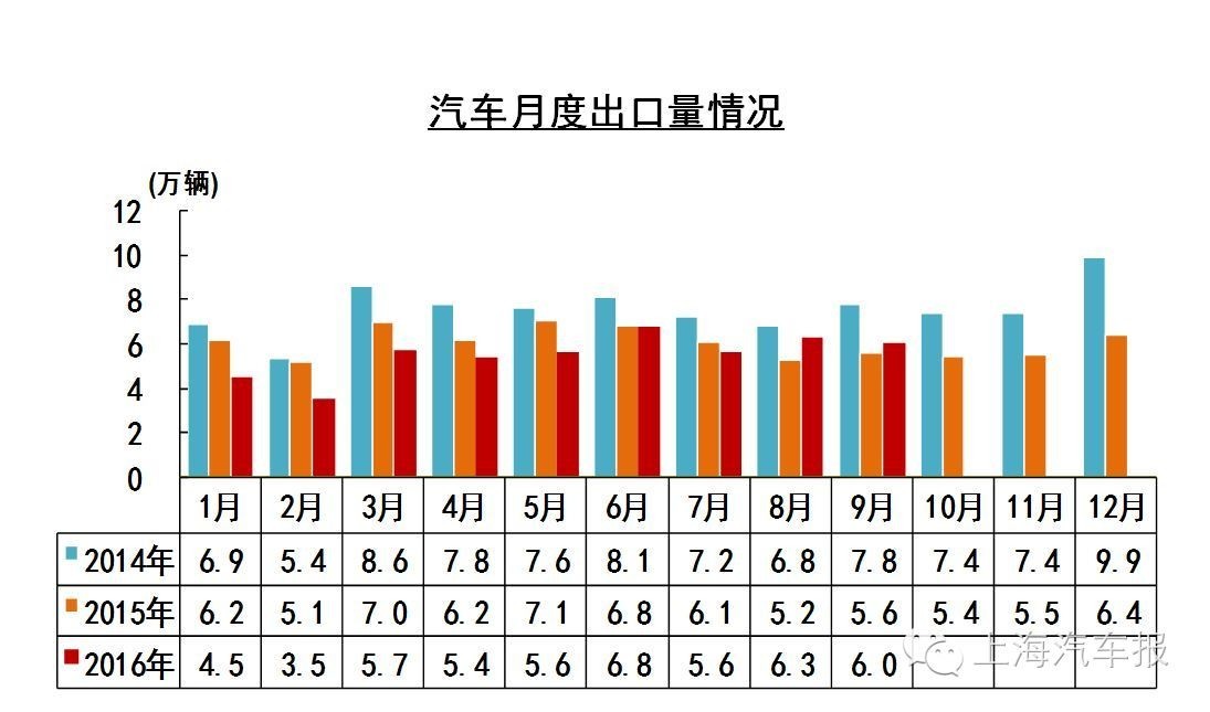 9月汽车企业出口为6.0万辆,比上月下降4.9%,比上年同期增长8.1%,连续两个月呈现同比增长态势。分车型看,乘用车本月出口4.2万辆,比上月下降1.4%,比上年同期上升15.5%;商用车出口1.8万辆,比上月下降12.1%,比上年同期下降6.0%。