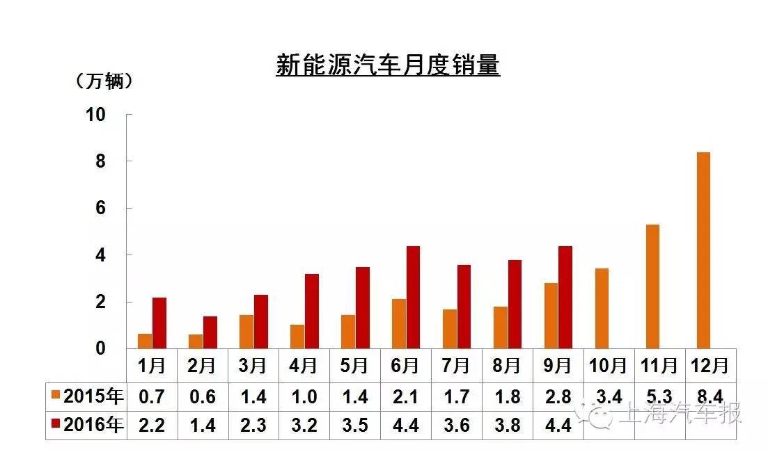 据中汽协会统计,9月新能源汽车生产4.3万辆,销售4.4万辆,同比分别增长25.7%和43.8%。其中纯电动汽车产销分别完成3.4万辆和3.5万辆,同比分别增长31.6%和63.1%;插电式混合动力汽车产销分别完成0.8万辆和0.9万辆,产量同比增长6.3%,销量下降2.1%。