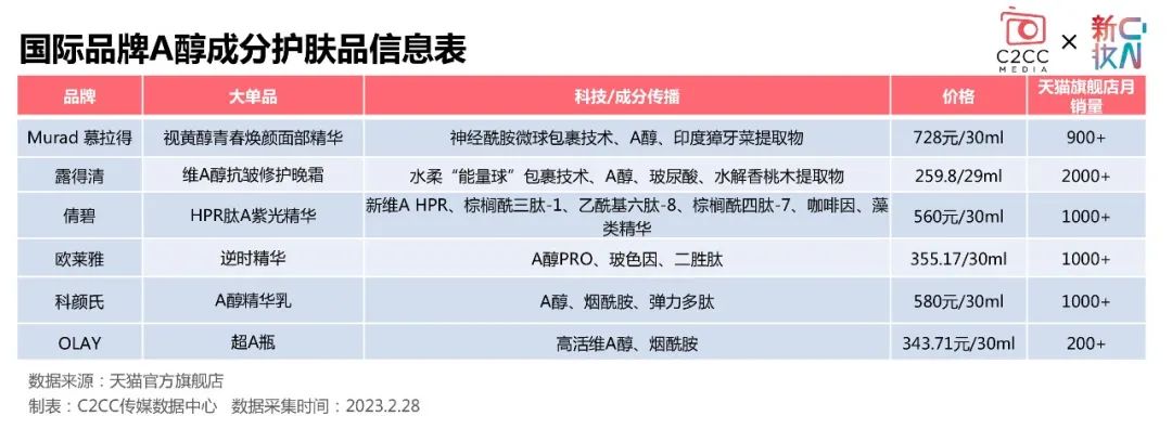 在那之后,A醇被广泛应用,国际品牌不断推出成熟的A醇成分产品,A醇市场在很长时间里,主要由国际品牌抢占。