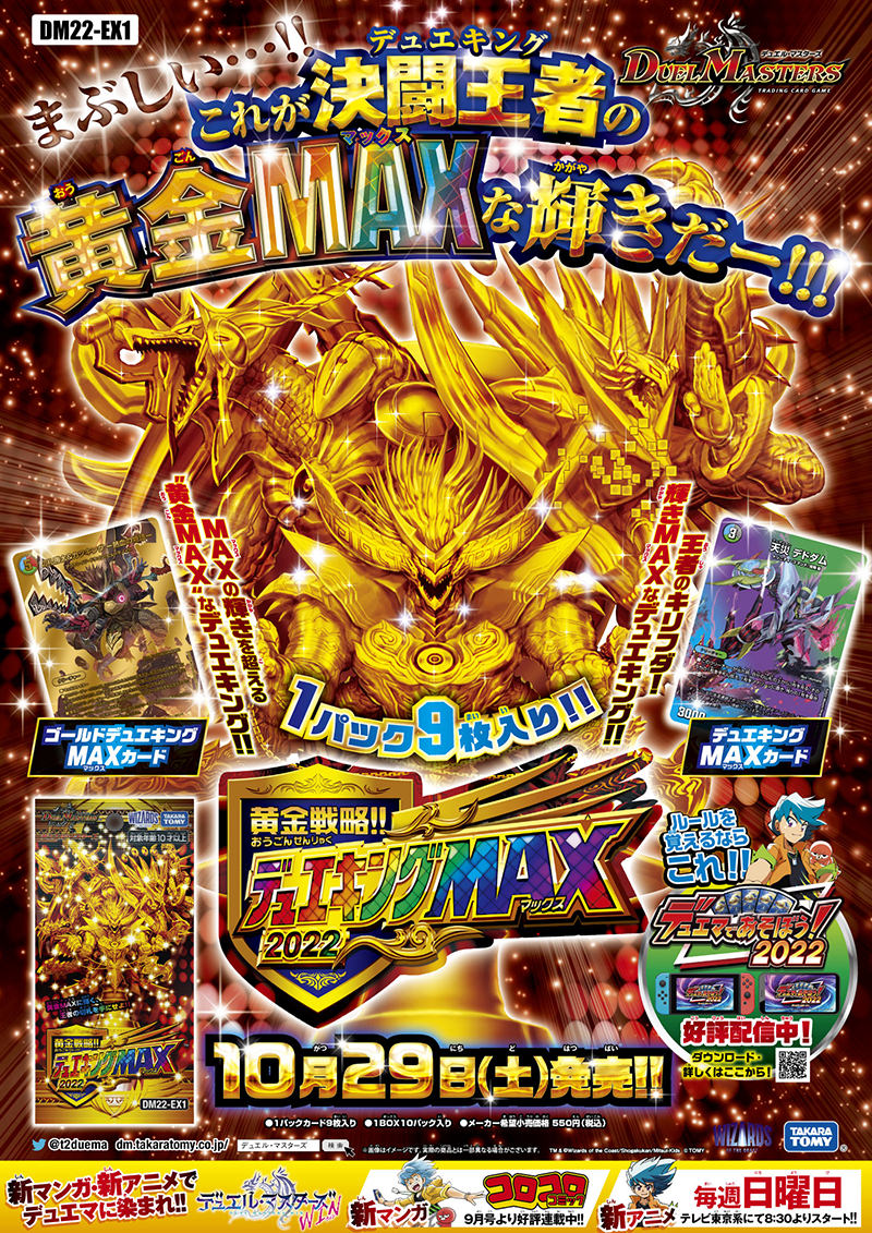 此外,多美还发售了3款扩充包,“黄金戦略!!デュエキングMAX 2022”收录了决斗MAX、黄金决斗MAX等有实绩的卡牌特别版及超强力新卡,大受好评;“gold of Abyss第二弹 轰炎的龙皇”超刺激卡组及普通卡组,豪华版的卡牌有烫金、效果追加等。
