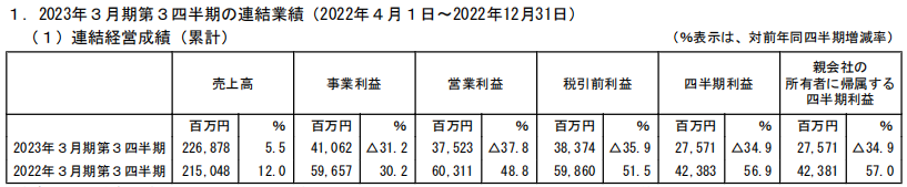 (文创潮这里需要指出的是,日本公司的财报年度大多数为4月1日至第二年的3月31日,因此财报三季度往往指的是日历年的四季度。)