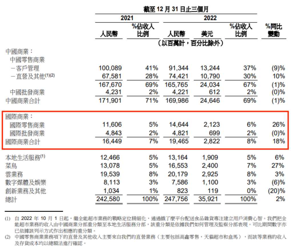 但从这次财报数据来看,国际商业在营收增长的同时,本季度经调整EBITA为亏损7.63亿元,对比去年同期亏损的29.17亿元,有了大幅收窄。细分来看,主要是向海外批发商品的阿里国际站,本季收入 48.21 亿元,同比基本持平;由速卖通、Lazada等组成的零售业务,本季收入146.44亿元,同比大增26%,是当季阿里所有电商类项目增幅最快的领域。