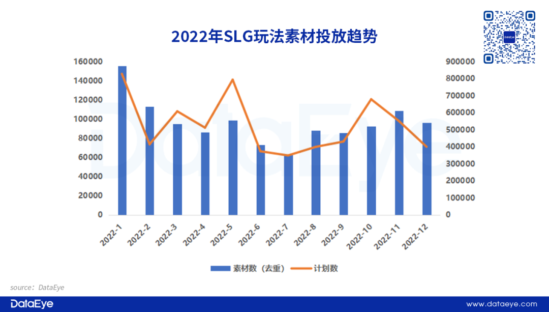 DataEye研究院观察、总结了2022年SLG赛道营销总体情况: