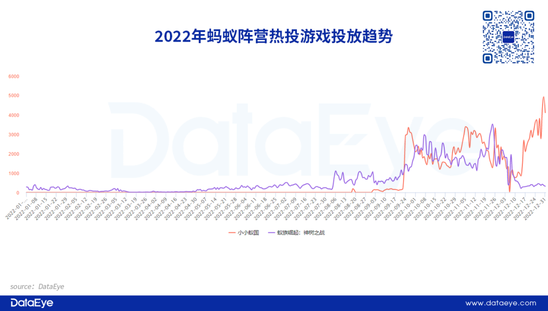 2022上半年各方集结参与买量大战,而下半年蚂蚁题材却异军突起。