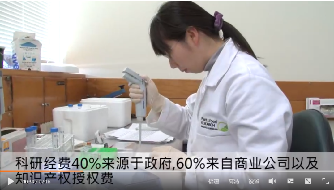 新西兰皇家植物与食品研究院的多数经费来自于企业 来源:佳沛公司宣传片截图