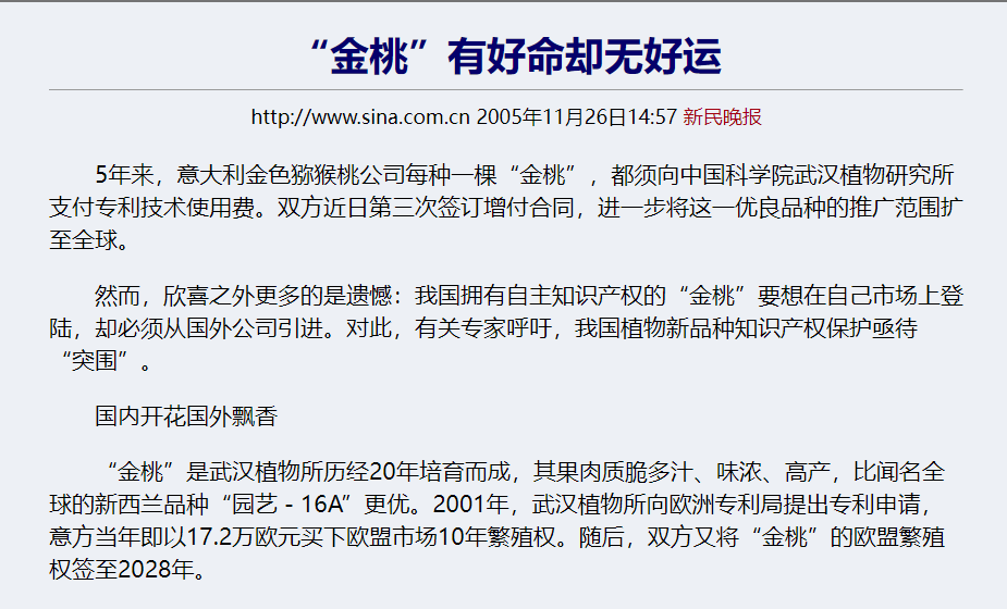 媒体对国内科研机构花20年培育的猕猴桃优质品种“金桃”命运的报道