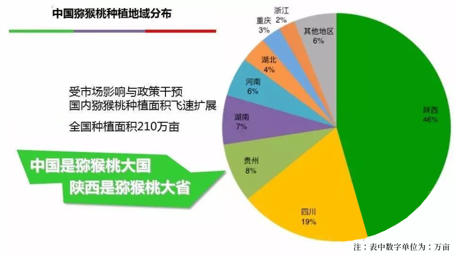 2019年的数据显示,中国种植猕猴桃的果园面积有182566公顷,仅陕西的周至县就有42万亩(28000公顷)以上,比新西兰全国的种植面积还要大。