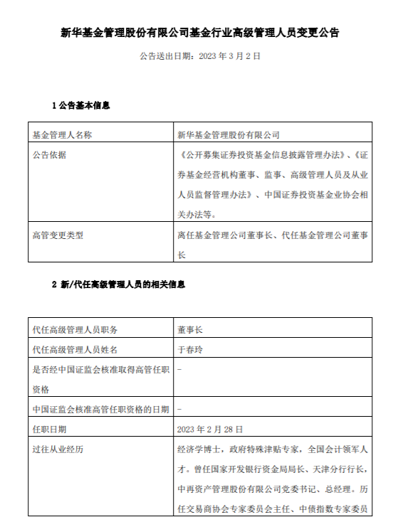 今日,新华基金公告称原董事长翟晨曦因个人原因离任,总经理于春玲代任董事长。这意味着随着股权的变更,新华基金的“天风时代”正式结束。