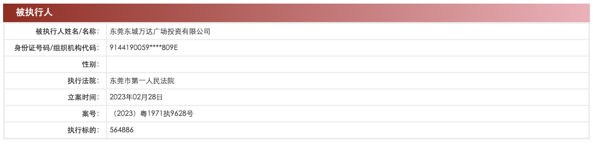 中国执行信息公开网显示,2月28日,大连万达商业管理集团股份有限公司及其子公司东莞东城万达广场投资有限公司新增一则被执行人信息,执行标的56万余元,执行法院为东莞市第一人民法院。大连万达商业管理集团股份有限公司成立于2002年9月,法定代表人张霖,注册资本约42.27亿人民币,经营范围含建设工程设计、代理记账、商业综合体管理服务等。