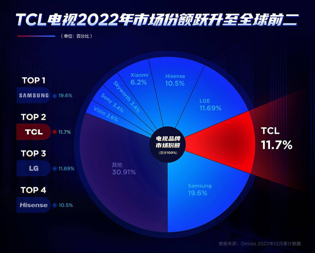 不仅如此,TCL还在Miniled面板上不断创新,引领全球电视面板产业的格局。据统计,2023年Mini LED背光电视的出货量将从2022年的320万台增加到2023年的380万台,渗透率从1.5%提高到1.7%。