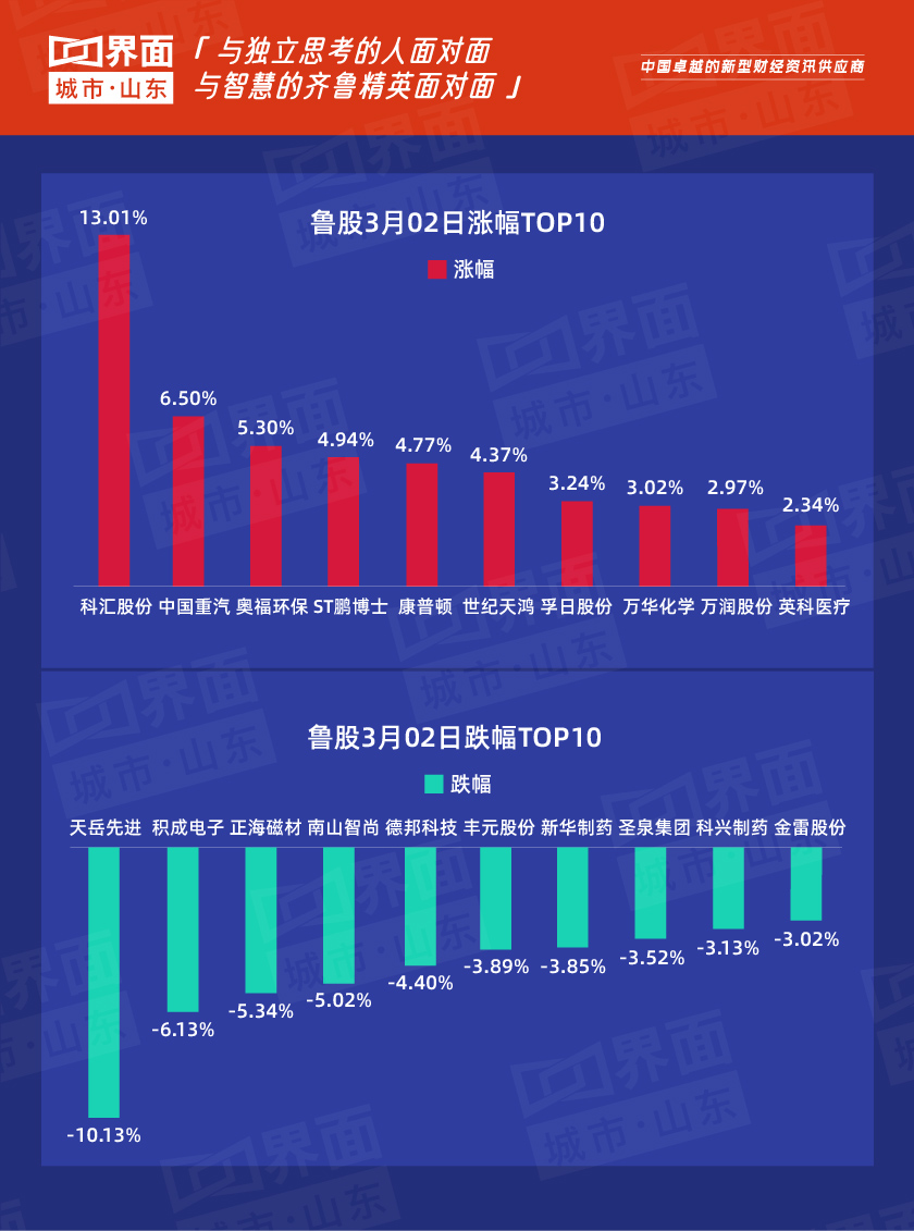 烟台市涨幅榜首:万华化学(600309),涨幅3.02%,股价106.33元,总市值3338亿元;