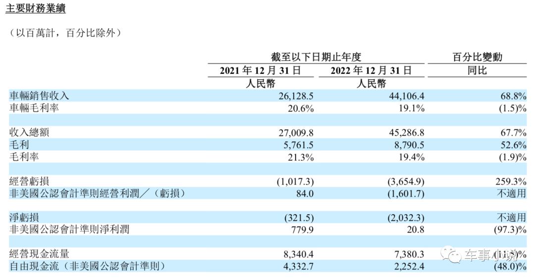 截至本报告期末,理想汽车手中拥有的现金及现金等价物、受限制现金、定期存款及短期投资为584.5亿元。其中,2022年自由现金流为22.5亿元,同比上年减少了48%。
