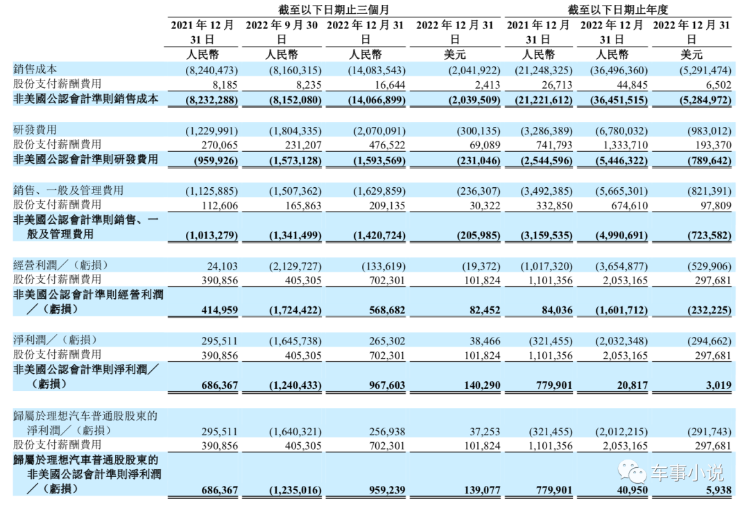 对此,理想汽车在财报中表示,销售成本增加主要是车辆交付量增加以及2022年第三季度起开始交付理想L系列令平均销售成本增加所致。