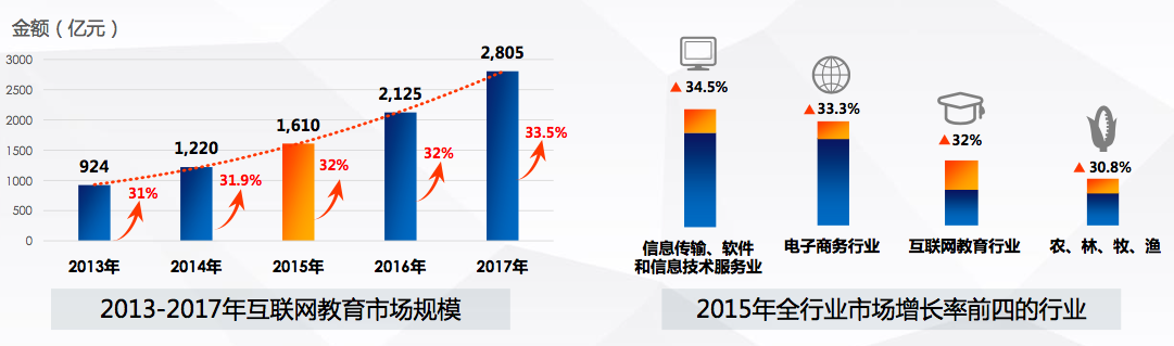 图1:在线教育市场和行业增长率排名