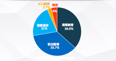图2 互联网教育市场细分领域份额(2015)
