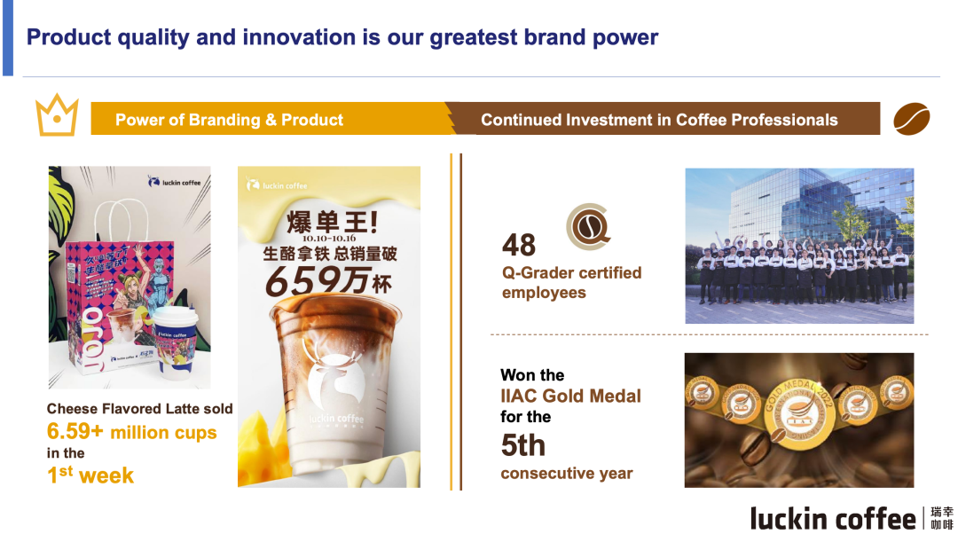 郭谨一说,瑞幸上季度继续围绕“人、货、场”的竞争优势开展业务。四季度品牌势能不断提升,和多个知名品牌联名;2022年瑞幸推出了近140个SKU,包括了超过100个新品;场上,他指瑞幸在城市覆盖和门店数量继续保持市场领先地位。