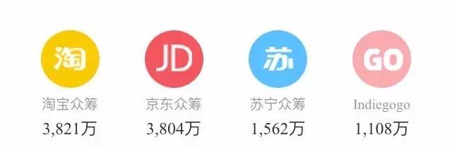 与昨日相比,四大平台的排位没有出现明显变化。日榜冠军依旧是淘宝众筹,京东众筹进一步缩短了与前者的差距,目前相差仅 17万。苏宁众筹在资金引入量上几乎原地踏步,而 Indiegogo则小有提升,再次突破千万。