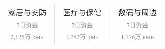 整个行业近两日保持在了一个比较稳定的状态之下,三大上榜的类目排名维持不变,资金引入累积量与昨日相比都有所增加。「数码与周边」再次拉近了和「医疗与保健」之间的差距,但是本周日能否反超还是一个未知数。