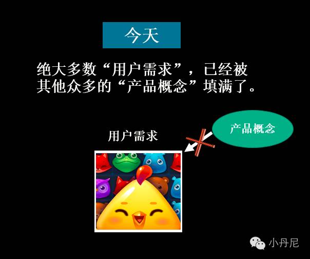 而且,你很难找到一个空缺的“用户需求”,因为今天基本上所有的“用户需求”,已经被众多竞争对手的“产品概念”填满了。