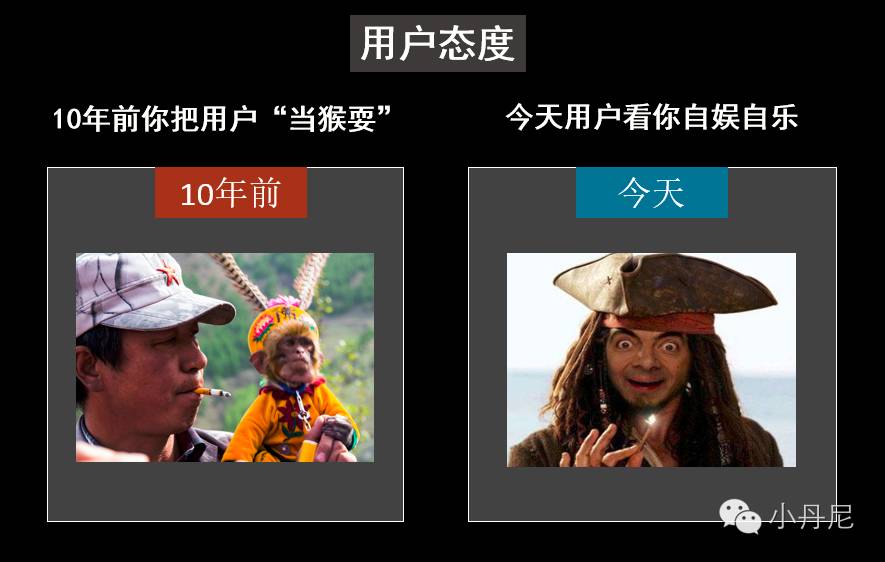 所以你可以发现,10年前,你可以不遵守丹尼链的第一步“激发用户痛点”,因为10年前的营销你把用户“当猴耍”:只要你说什么,用户基本上就愿意尝试什么;但是今天的营销是用户看你自娱自乐,拙劣的文字游戏只能自嗨。