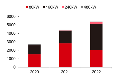 自2020年以来,国家电网等电力运营商的直流桩招标在数量大幅提升的同时,160kW以上功率充电桩的比例显著增长,更高功率的充电桩功率已经成为用户最真实的需求。