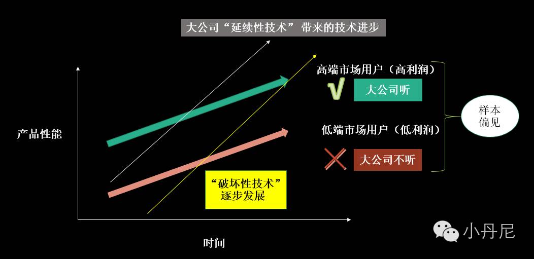 “破坏性技术”的出现,短期内会导致产品性能的降低,很可能刚开始会让大公司感到不屑一顾。
