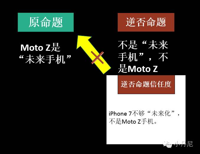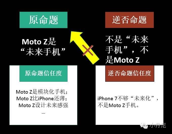 至少你需要在同一张海报里提出原命题的论据:比如Moto Z是模块化手机,Moto Z比iPhone 7还薄等等。