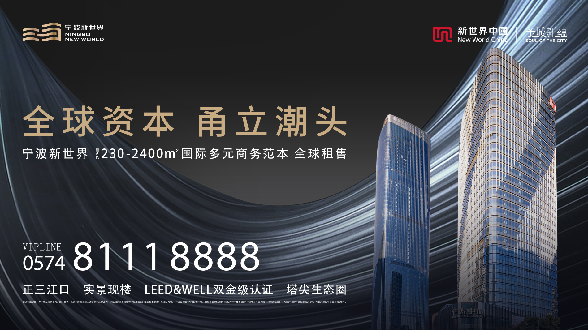 本广告及图片仅为示意,其他一切未列明事项或上述资料有所更改的,均以双方签署法律文件和政府部门最终批准的资料及图纸为准。“宁波新世界”为项目推广名,地名办最终批准的 11#12# 写字楼案名为“宁铸中心”; 所写面积均为建筑面积。甬鄞房现备字(2022)第008号,甬鄞房现备字(2022)第013号。