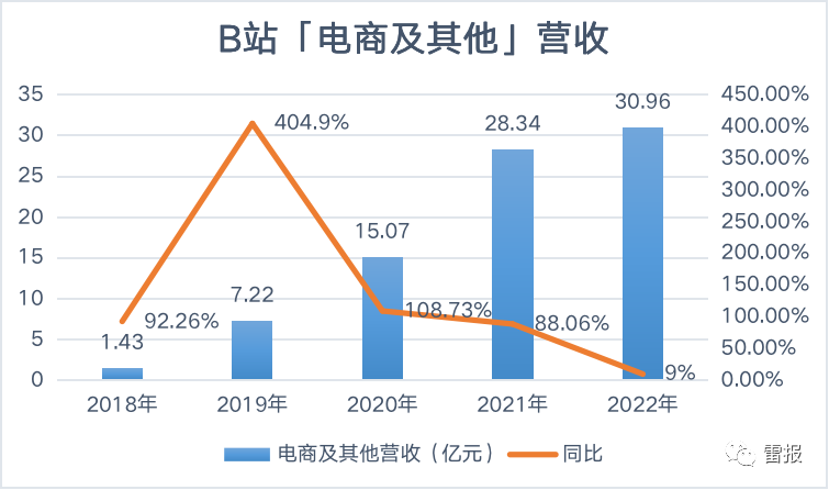 2022,B站电商及其他营收同比增速大幅下降