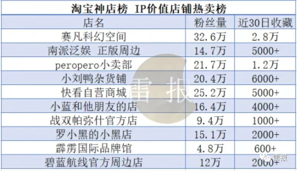 其它位于前十的店铺分别为南派泛娱正版周边、peropero小卖部、小刘鸭杂货铺、快看自营店、小蓝他朋友的店、战双帕弥什官方店、罗小黑的小黑店、和碧蓝航线官方周边店。