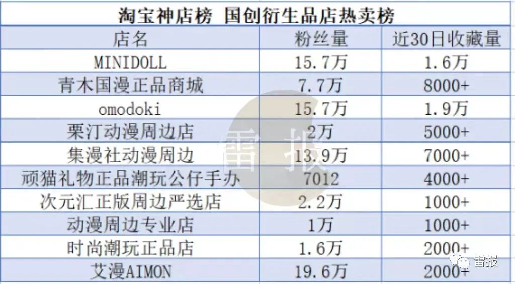 第二名为青木国漫正品商店,和经典优质国漫作品《罗小黑》《狐妖小红娘》《天官赐福《少年锦衣卫》等周边成为其热销产品。余下店铺为omodoki、栗汀动漫周边店、集漫社动漫周边店、顽猫礼物正品潮玩公仔手办、次元汇正版周边严选店、动漫周边专业店、时尚潮玩正品店、艾漫AIMON。