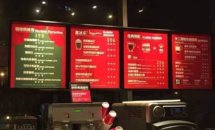 比如星巴克的菜单板就有“玄机”,一般情况下其产品分布在4块牌子上,从不吝啬拿其中一块专门留给当下重推产品,甚至往往以图片形式呈现。