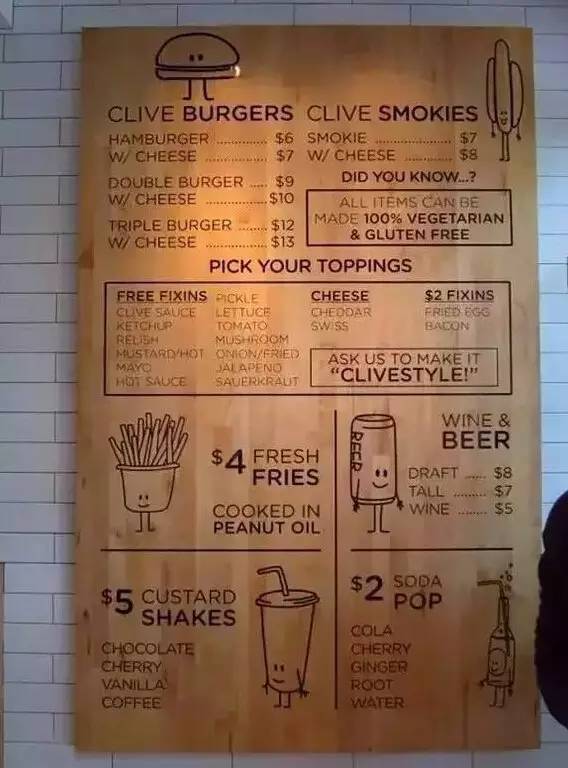 一些文艺的独立小馆,甚至会采用手绘菜单方式。这能间接传达一种态度——你对自己的产品有多用心,也容易形成顾客的记忆点。