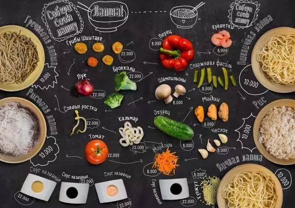 而如果能将菜单与门头、背景墙甚至杯垫、纸巾、外带包装等周边设计成一个系列,简直不要太perfect。